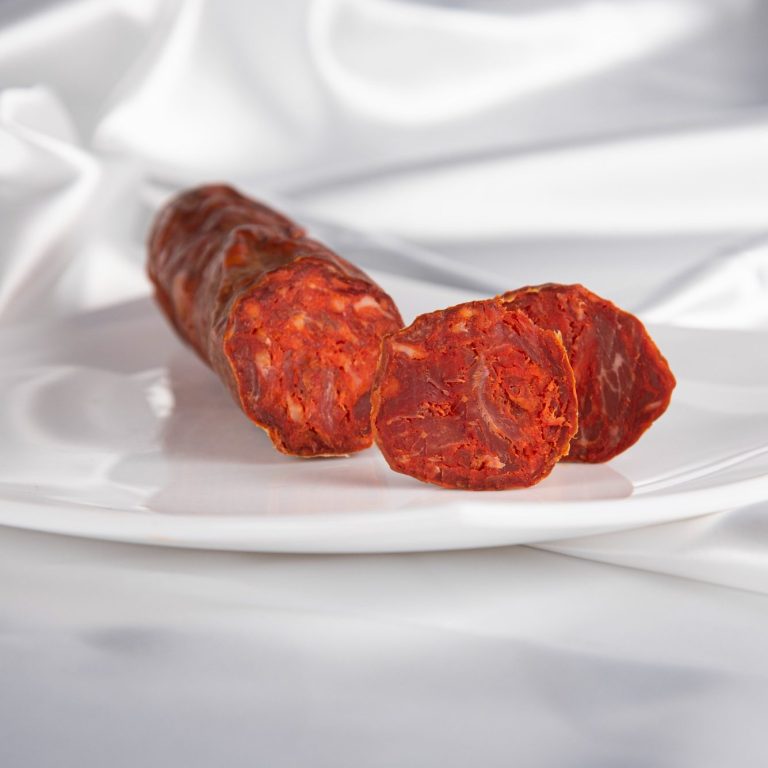 Tras su embutido en tripa natural gruesa, se sometea un proceso de curación lenta y ahumado suave en leña de roble. A diferencia del Chorizo Tradicional, el Chorizo Cular permanece